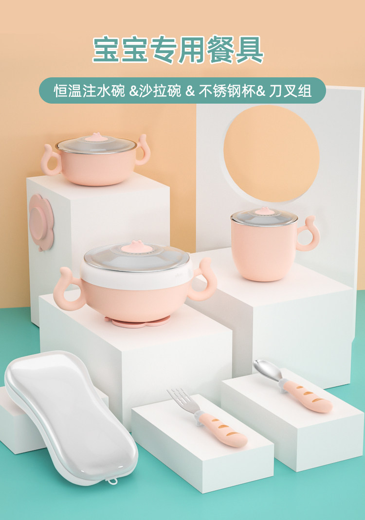 Water injection bowl (detachable water injection) stainless steel bowl (not removable) stainless steel water glass knife fork combined cutlery for four sets