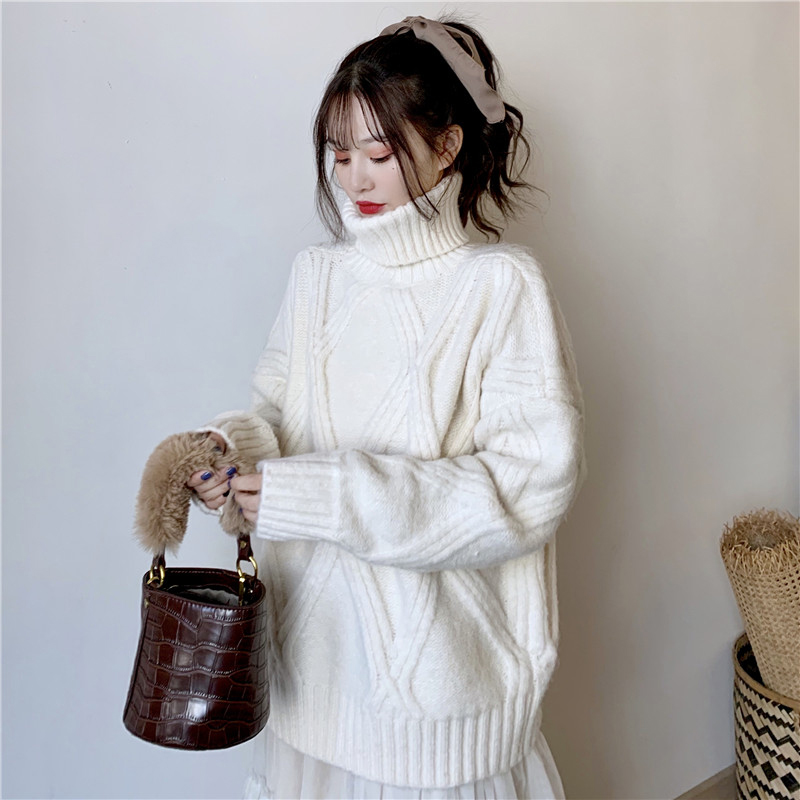 Lazy wind large size loose Korean version turtleneck sweater women's 2020 new style thickened knitted sweater top trendy in autumn and winter