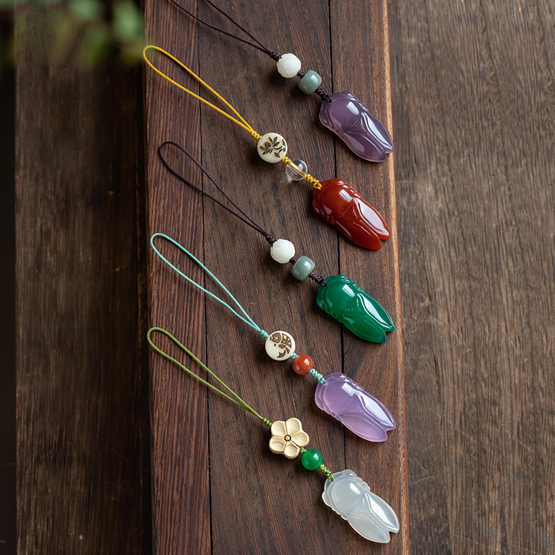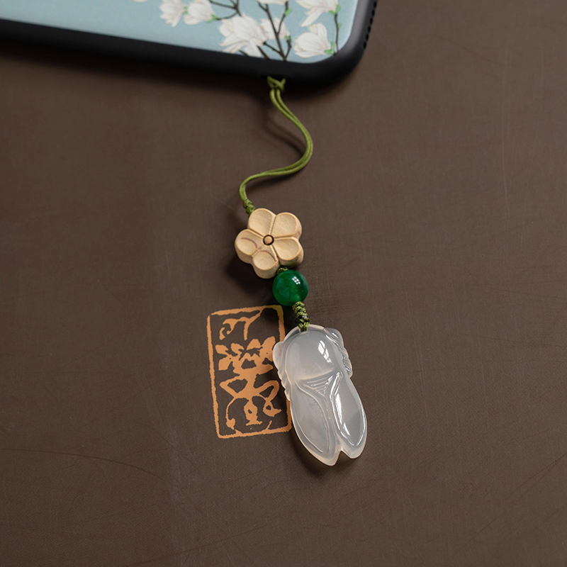 Do you know whether the Park house ice species jade chalcedony jade cicada mobile phone chain lanyard short pendant pendant pendant men and women U disk car keychain