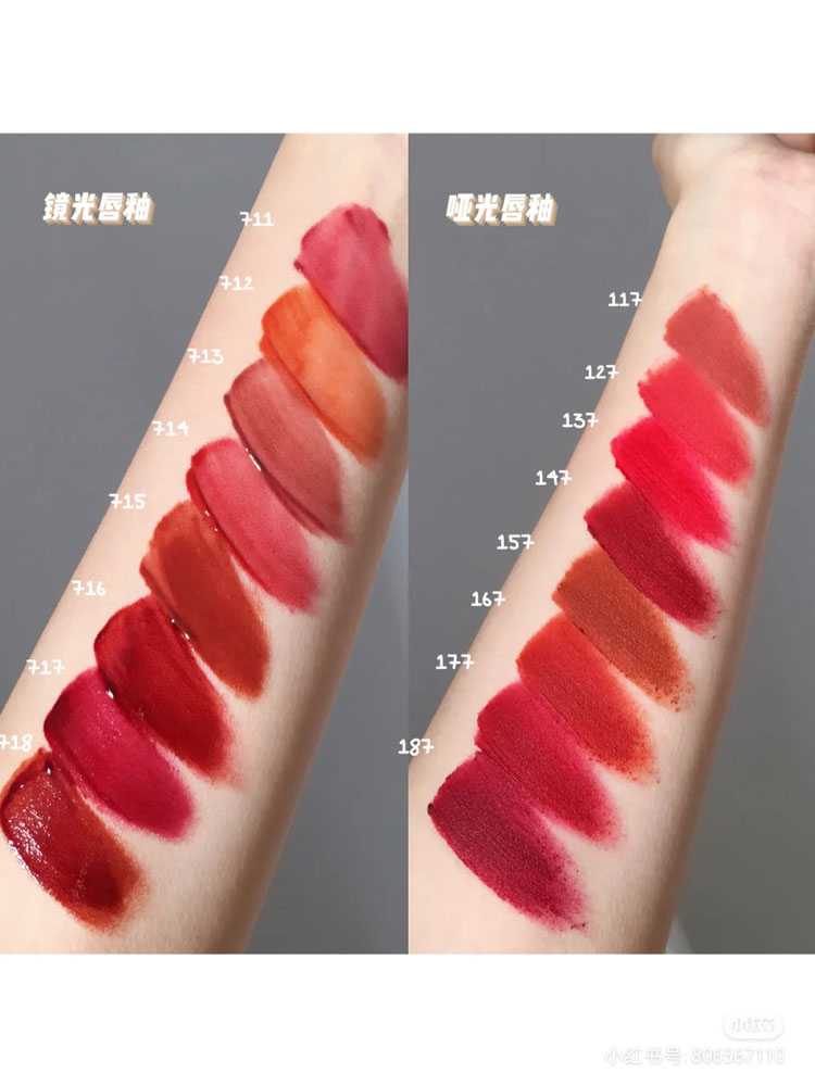 A touchdown reference picture (mirror) 713#奶茶裸色❤️hot selling (mirror) 718#碘酒红❤️hot selling (mirror) 714#西柚红(mirror) 715#焦糖柿子(