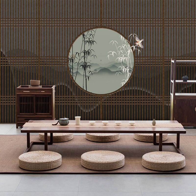 3D new Chinese garden wallpaper ancient style decoration flowers birds Zen background wall living room Chinese style landscape tea room wallpaper