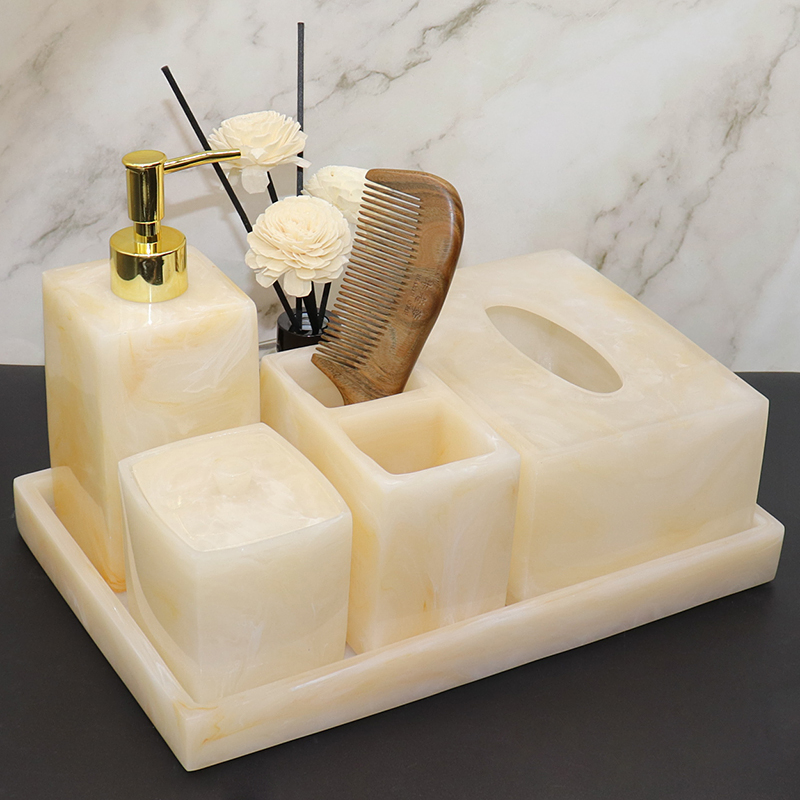 Hotel light luxury bathroom supplies decoration bathroom five-piece set toilet tray hand sanitizer bottle washing set Nordic
