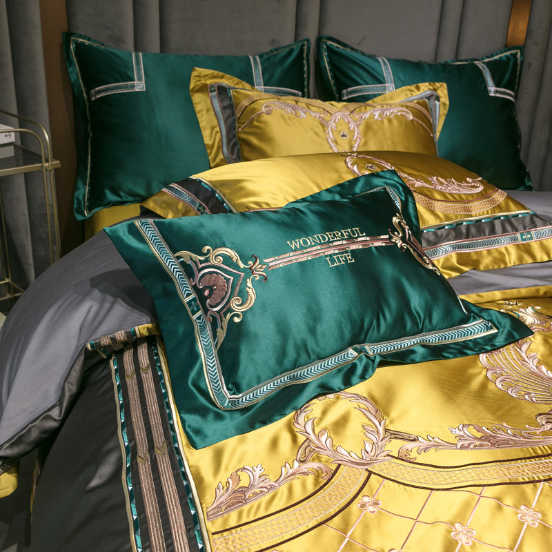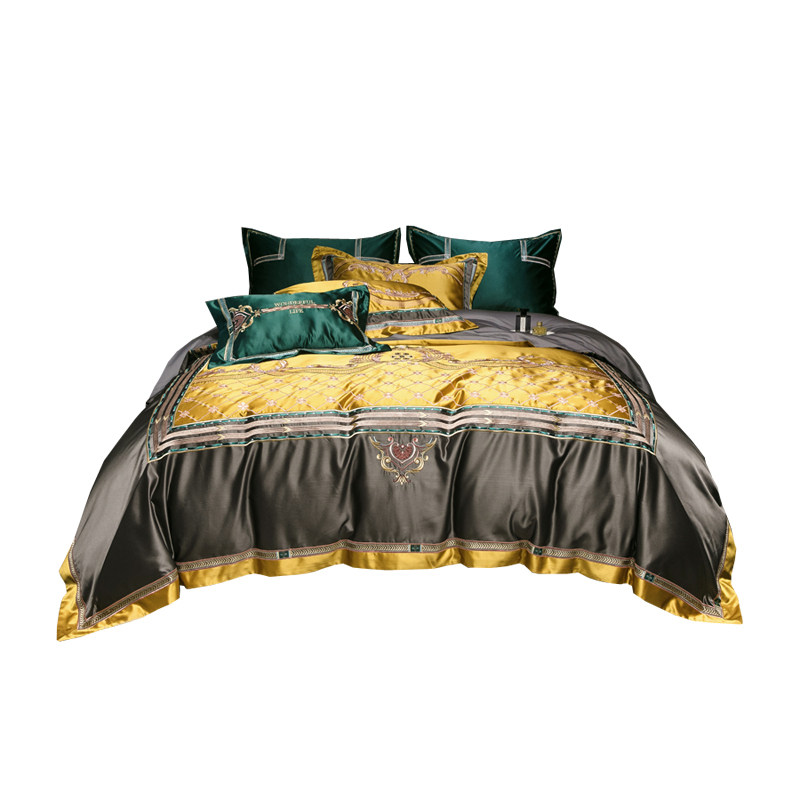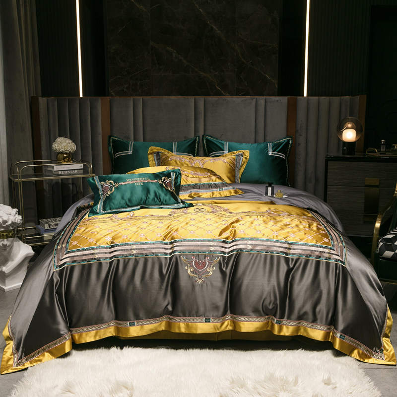 High-end European style 140 Genuine Silk Cotton Pure Cotton Six Pieces Gold Embroidered Palace Tinged Villa Like 1 8 bed goods