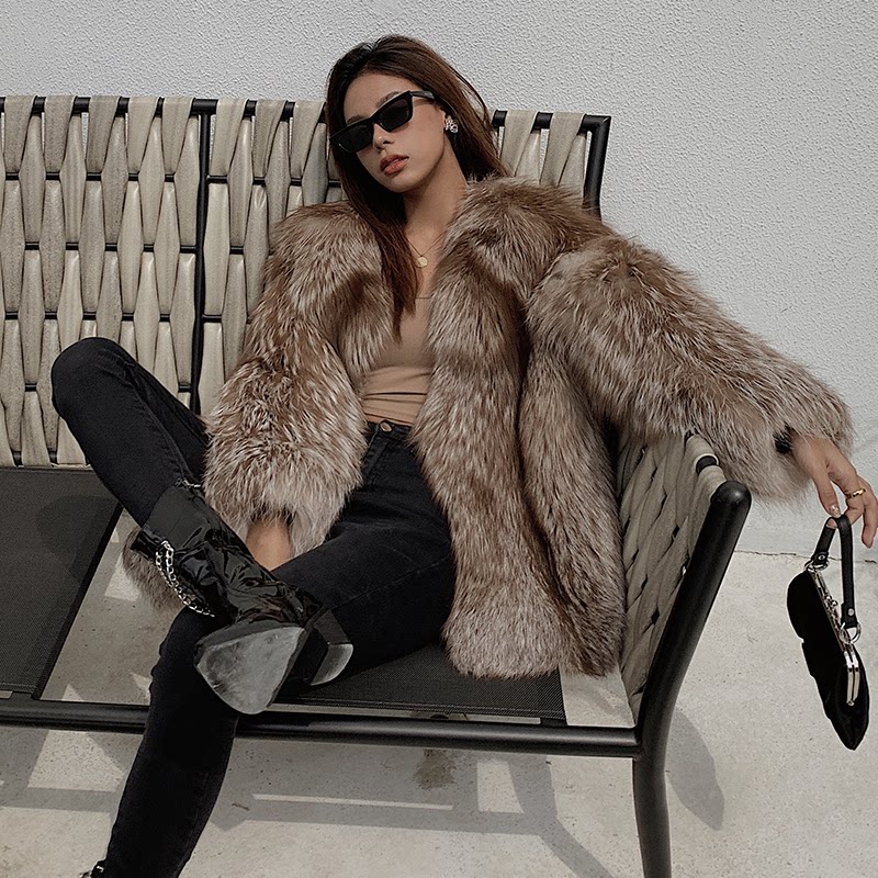 Aying Fur Sen Island imports chocolate fox fur coat woman with a whole fur coat