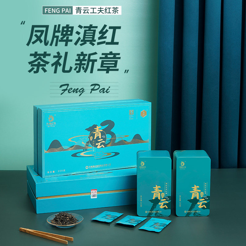Feng brand black tea tea Yunnan Fengqing premium Yunnan black tea Qingyun 200g tea gift box Mid-Autumn elders gift