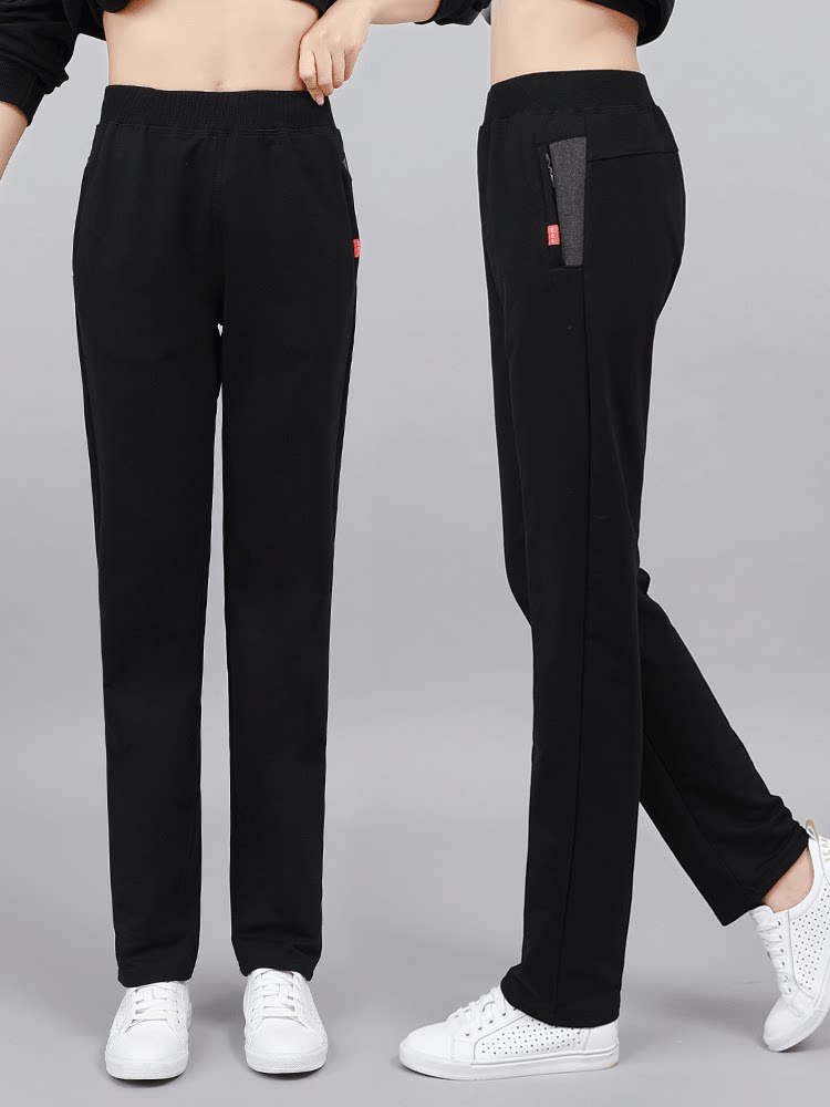 Zip pocket sweatpants Women's trousers spring and Autumn thin cotton casual straight pants Elastic high waist thin pants