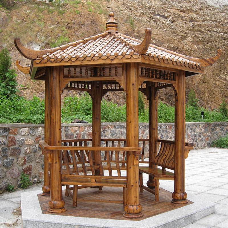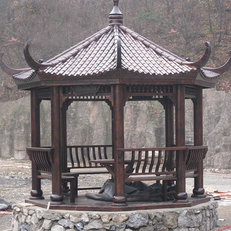 Ziye outdoor solid wood Chinese antique pavilion carbonized wood viewing pavilion garden courtyard leisure pavilion garden landscape pavilion