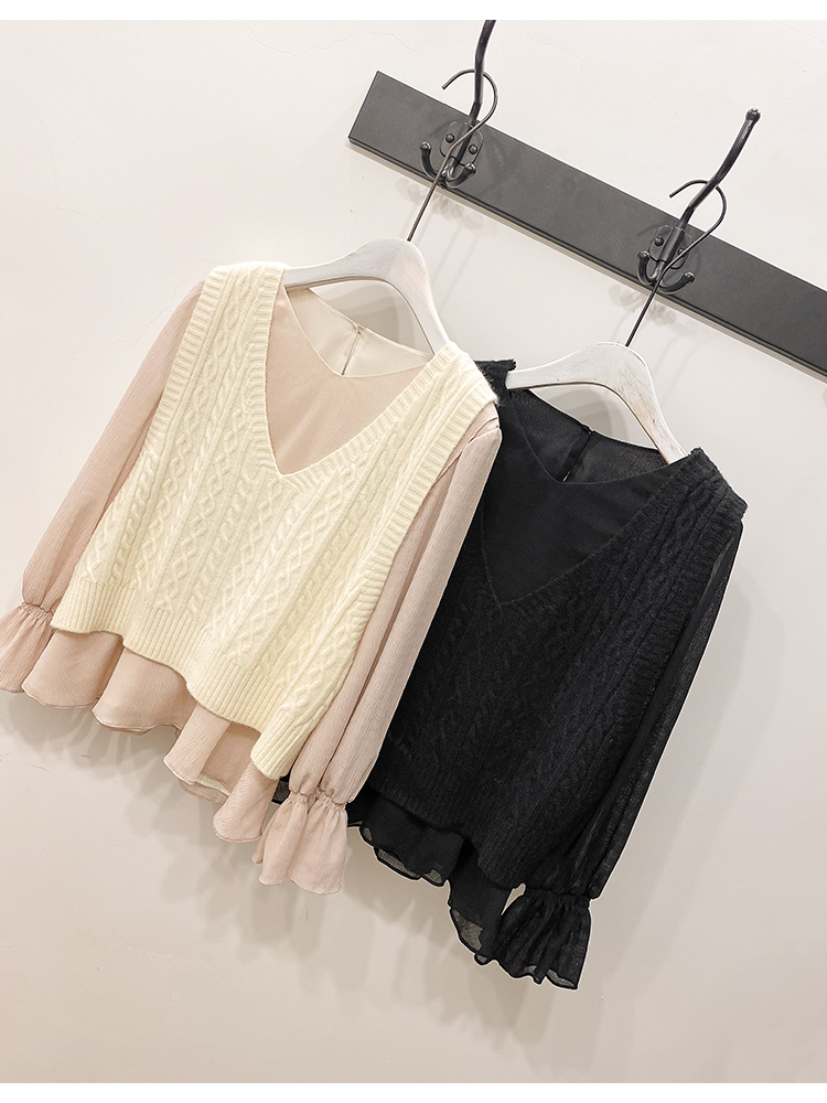 XXTHEMCAPS Korea JJ Home Guest for Folds Yarn Fairy Elegant Lotus Leaf Sleeve Small Skirt Hem Shirt 2 Color