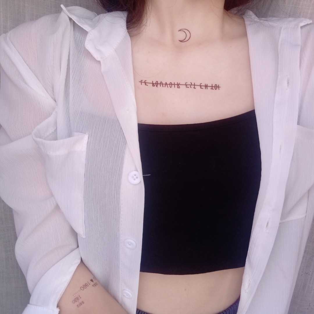 Net Red Breast Mouth Moon Tattoo Patch Waterproof Female Persistent Emulation ins Wind English Letters Personality Dark Black Ensemble stickers