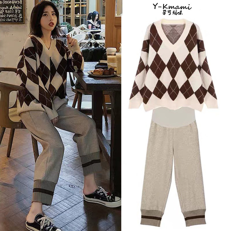 Maternity Fall/Winter Suit 2020 New Fashion Plus Plus ThickEned Sweater Medium long net red two-piece set