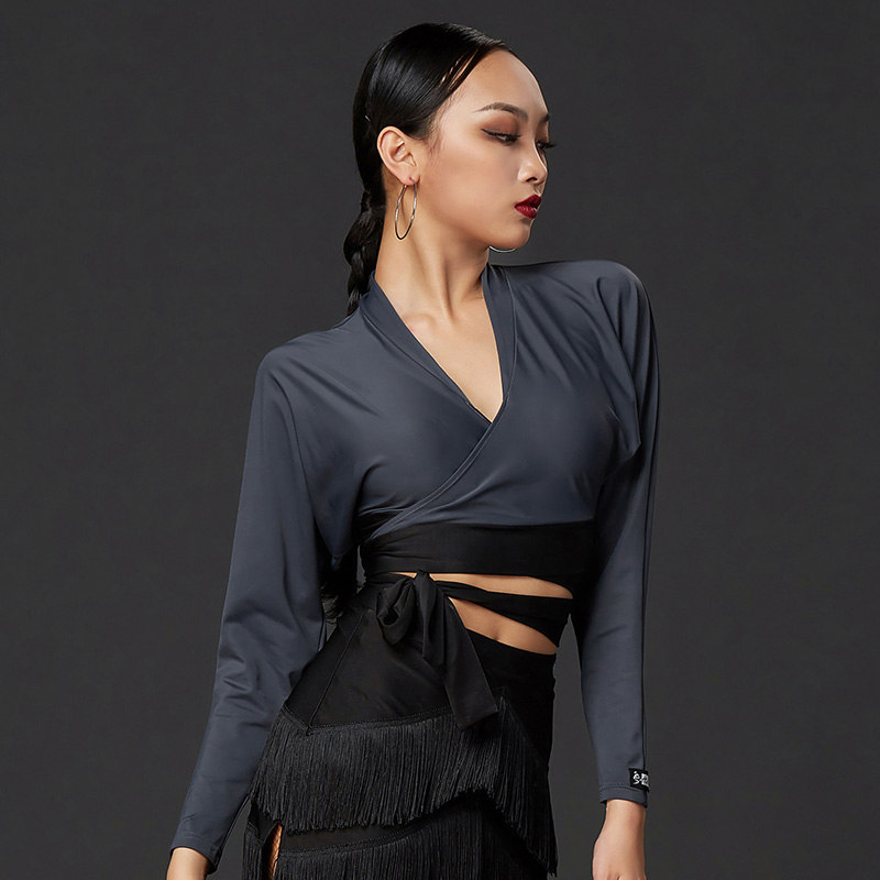 Real imperial Latin dance suit with female adult dancer long sleeve dance suit national standard V collar Morden social dance blouse