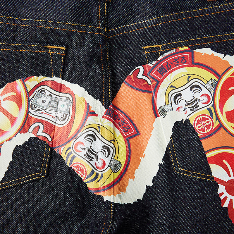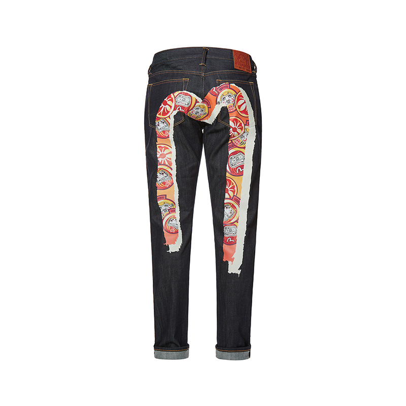 EVISU 20SS Men's Bodhidharma pattern large M printed narrow-leg jeans 2EAHTM0JE92917
