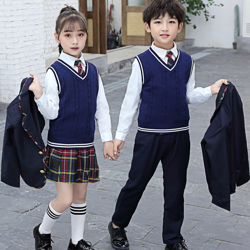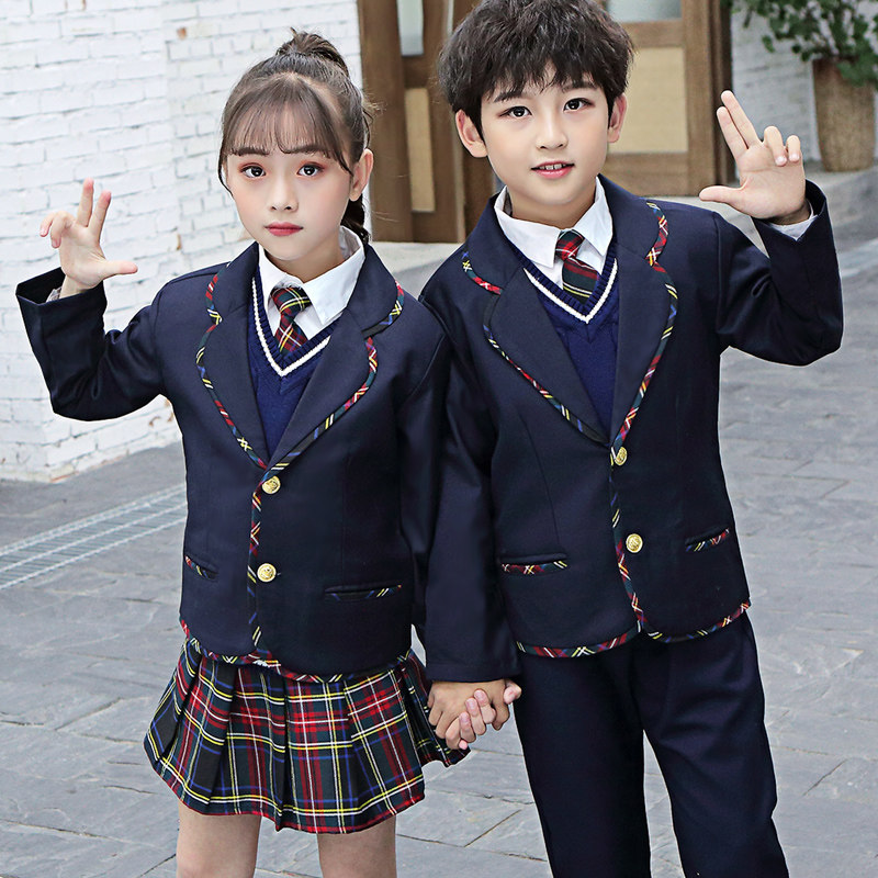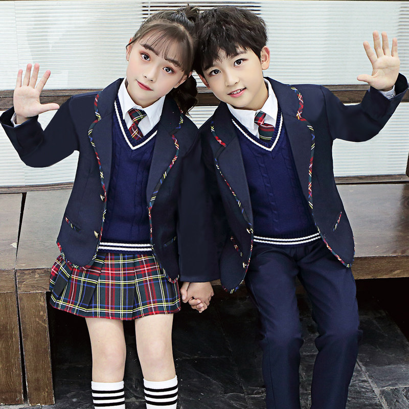 British style suit school uniform primary school students class service boys suit spring and autumn kindergarten clothing girls four-piece suit
