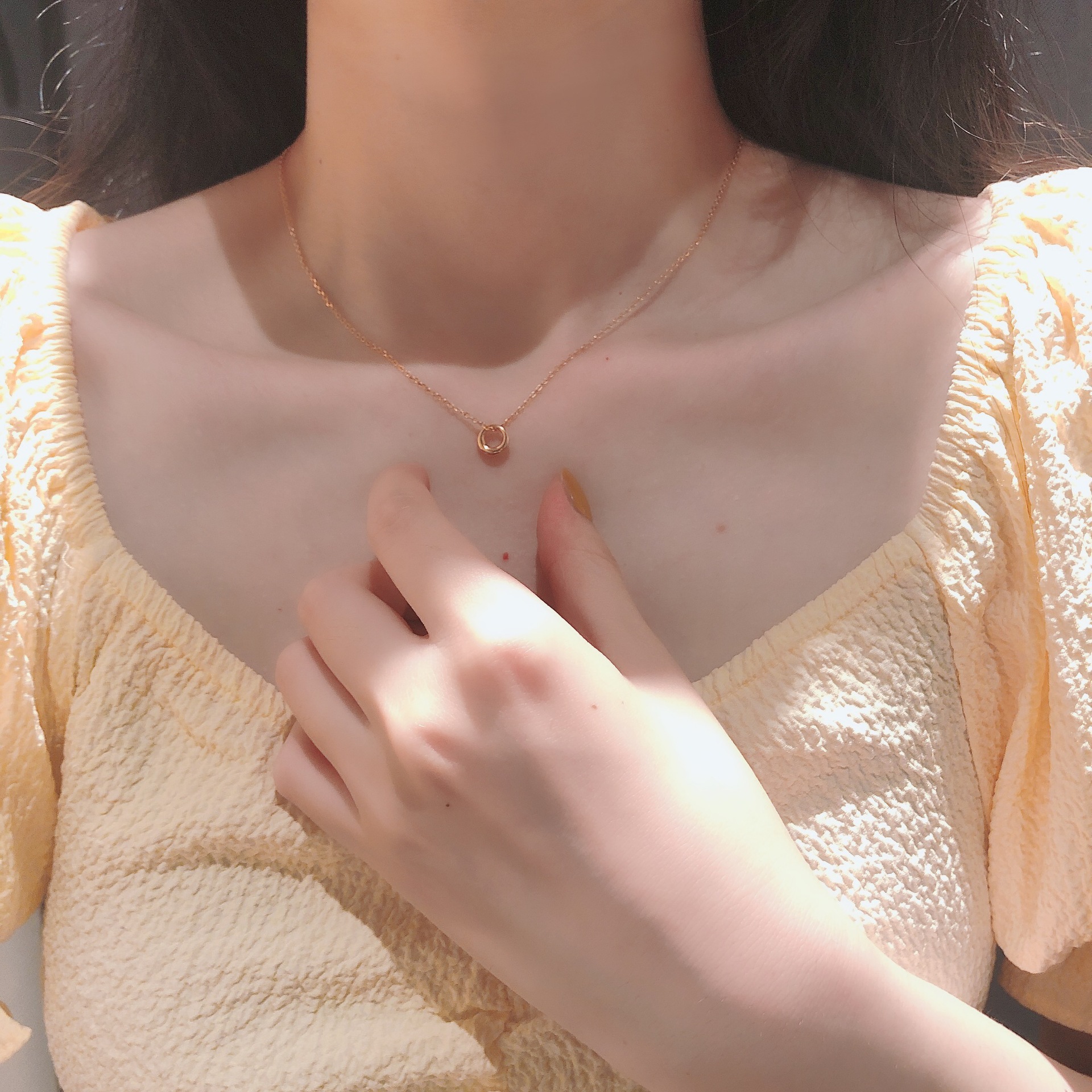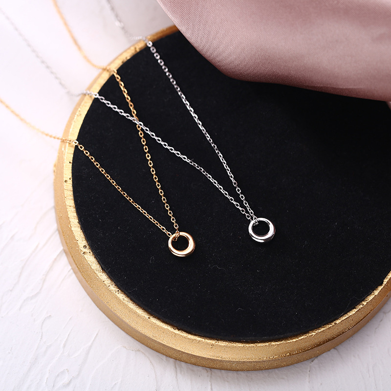 CaringKiss necklace 925 sterling silver new geometric circle necklace female ins simple niche design clavicle chain