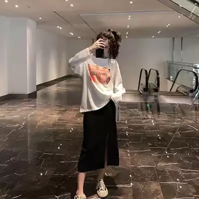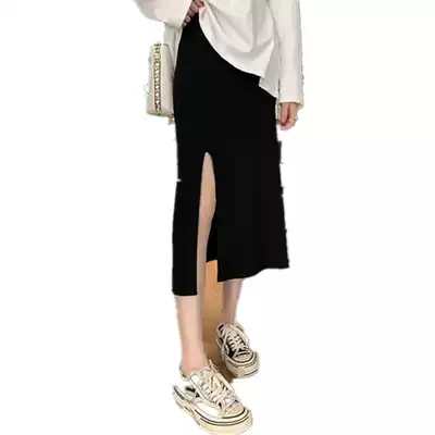 Autumn and winter pregnant women's hip skirt fashion Joker Korean slim slim knitted skirt adjustable split belly skirt