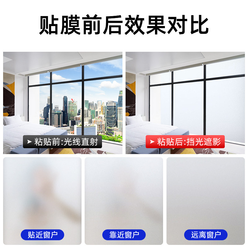Window Frosted Glass Stickers Light Transmission Opaque Makeup Room Bathroom Door Privacy Anti-Walk Light Shading Film