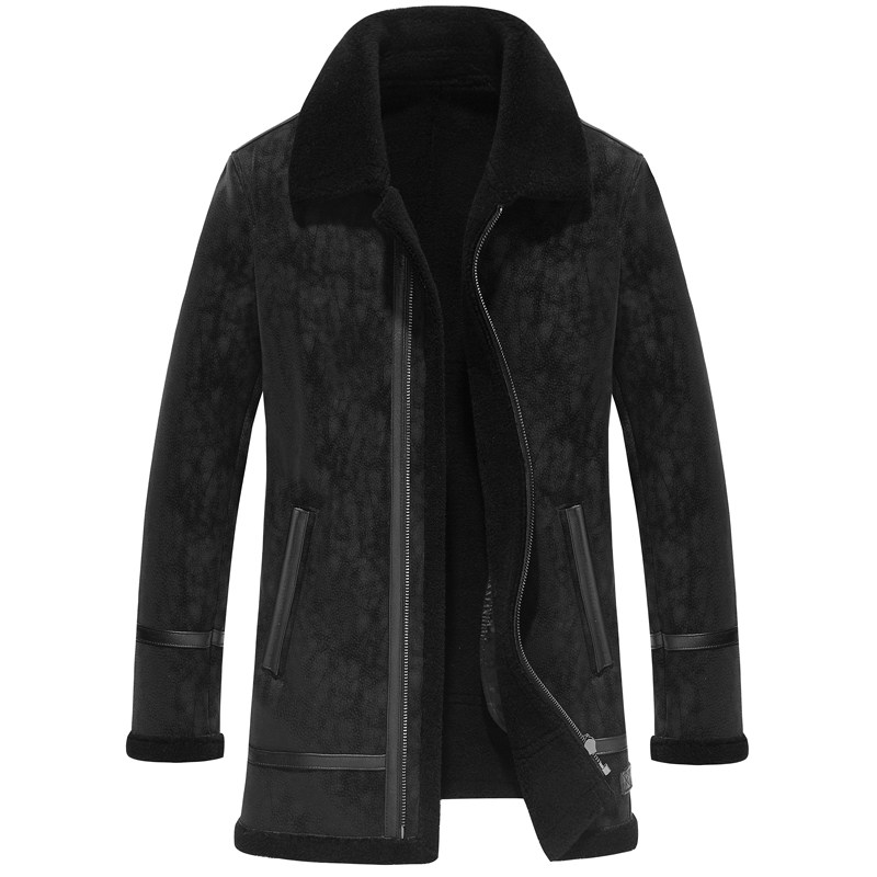 Haining leather leather men's sheep shearing lapel middle-aged wool imitation leather wool one-piece plus velvet thick fur coat