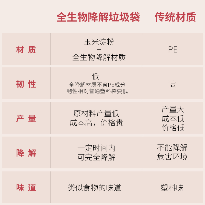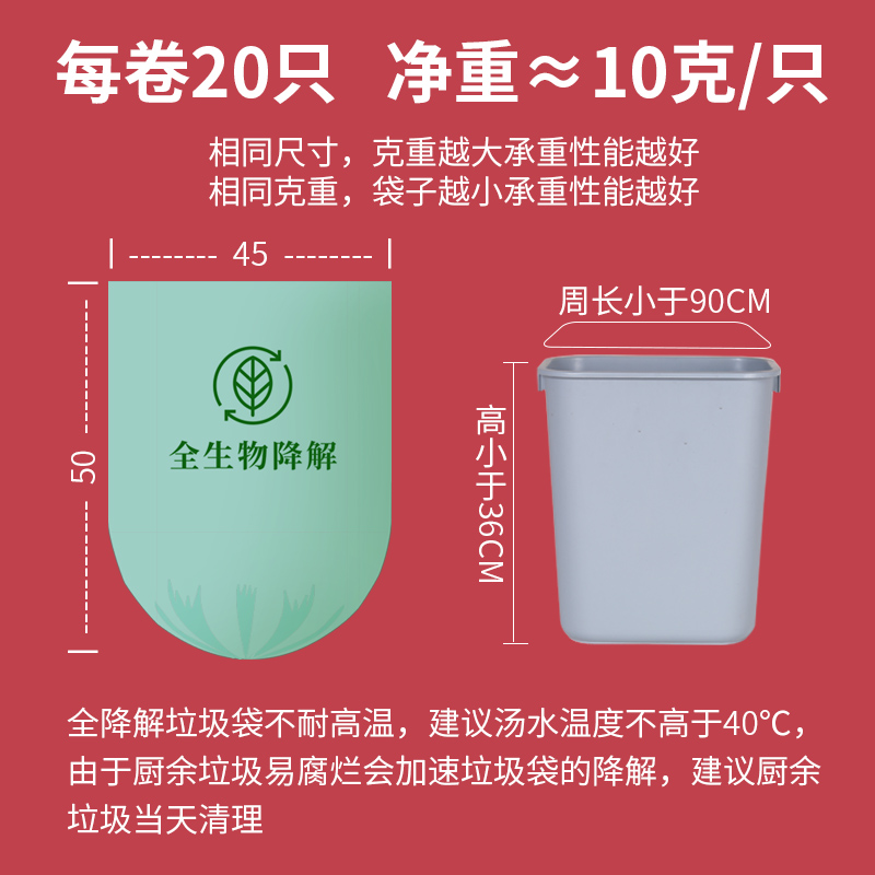 1 roll of fully degradable garbage bags (20 pieces) 2 rolls of fully degradable garbage bags (40 pieces) 4 rolls of fully degradable garbage bags (80 pieces) 5 rolls of fully degradable garbage bags (100 pieces)