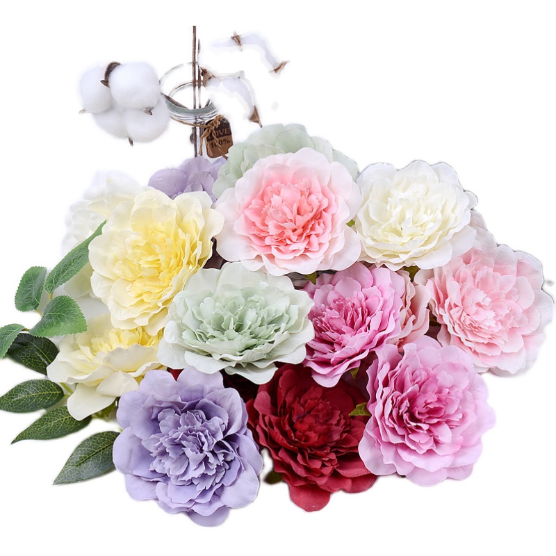 Small Qing new color system emulation peony flower head silk cloth fake flowers DIY handmade material home living room decorated desert rose