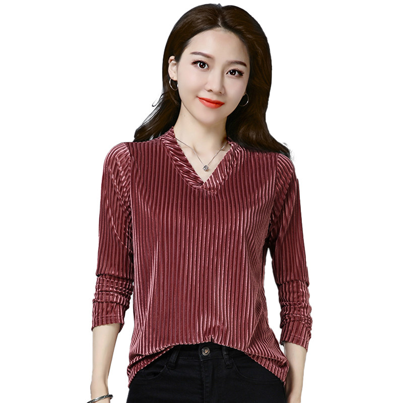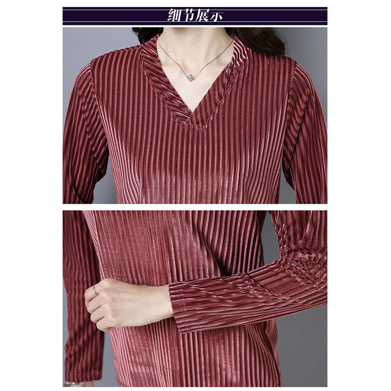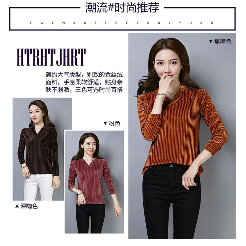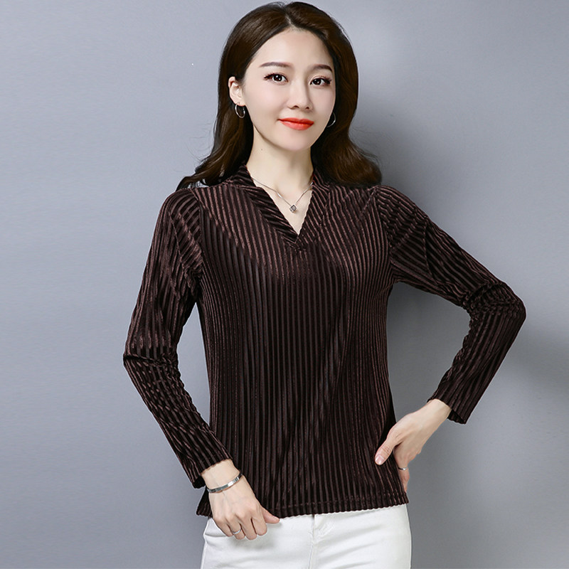The new shirt in autumn 2022 with striped gold velvet long sleeve T - shirt in autumn 2022