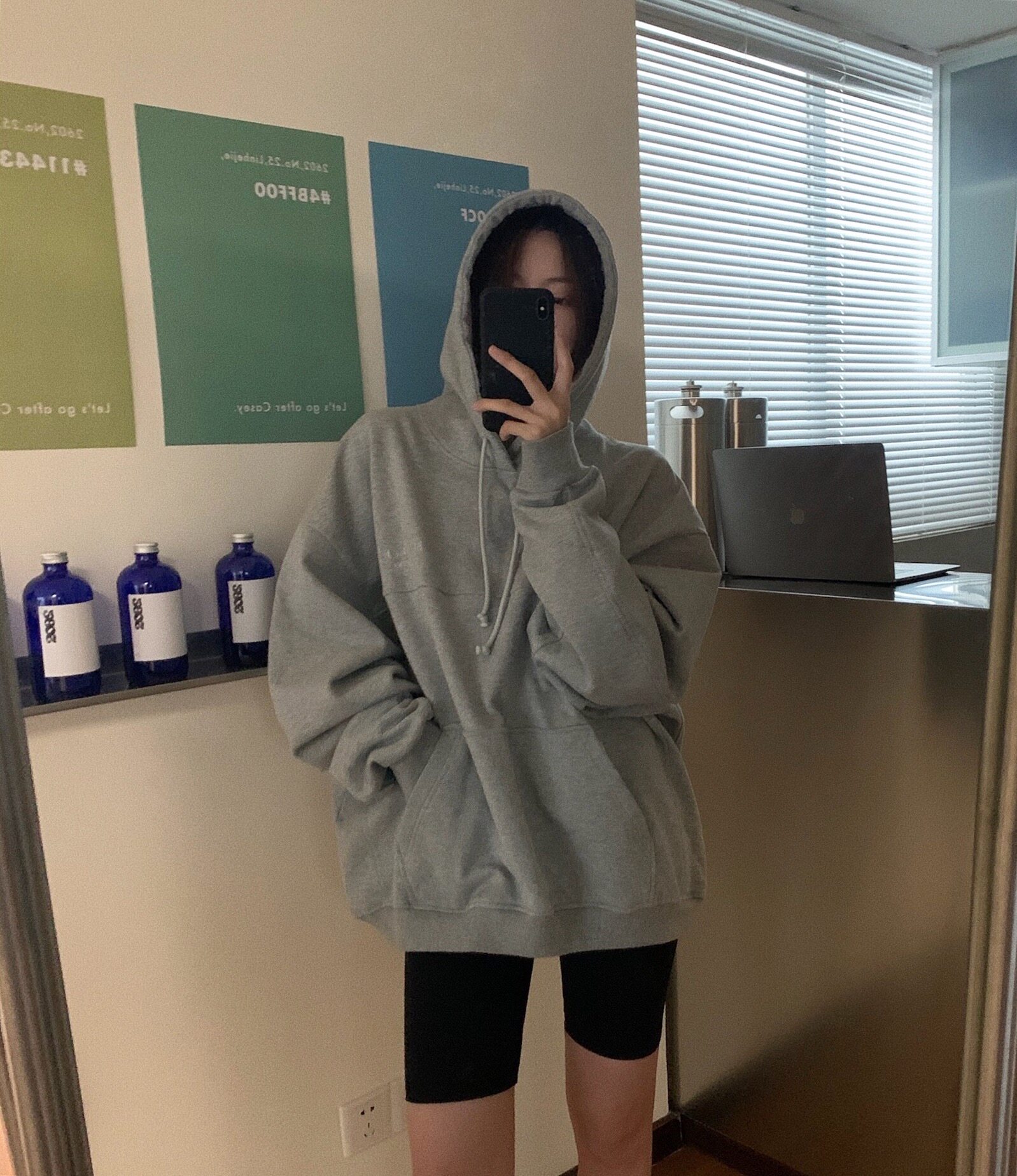 LIL CHER gray hooded sweatshirt women loose Korean edition 2021 new spring and autumn thin lazy wind jacket top