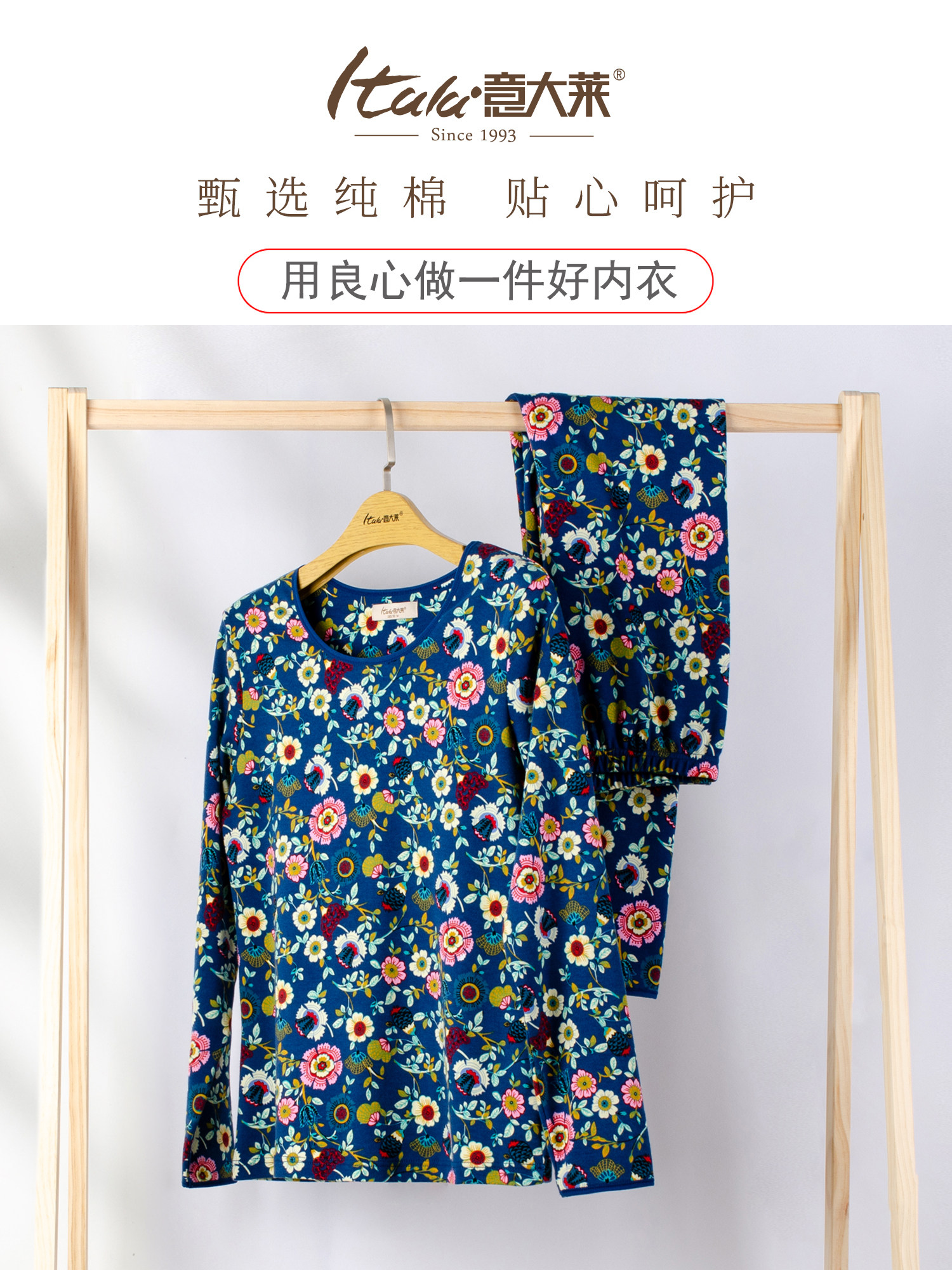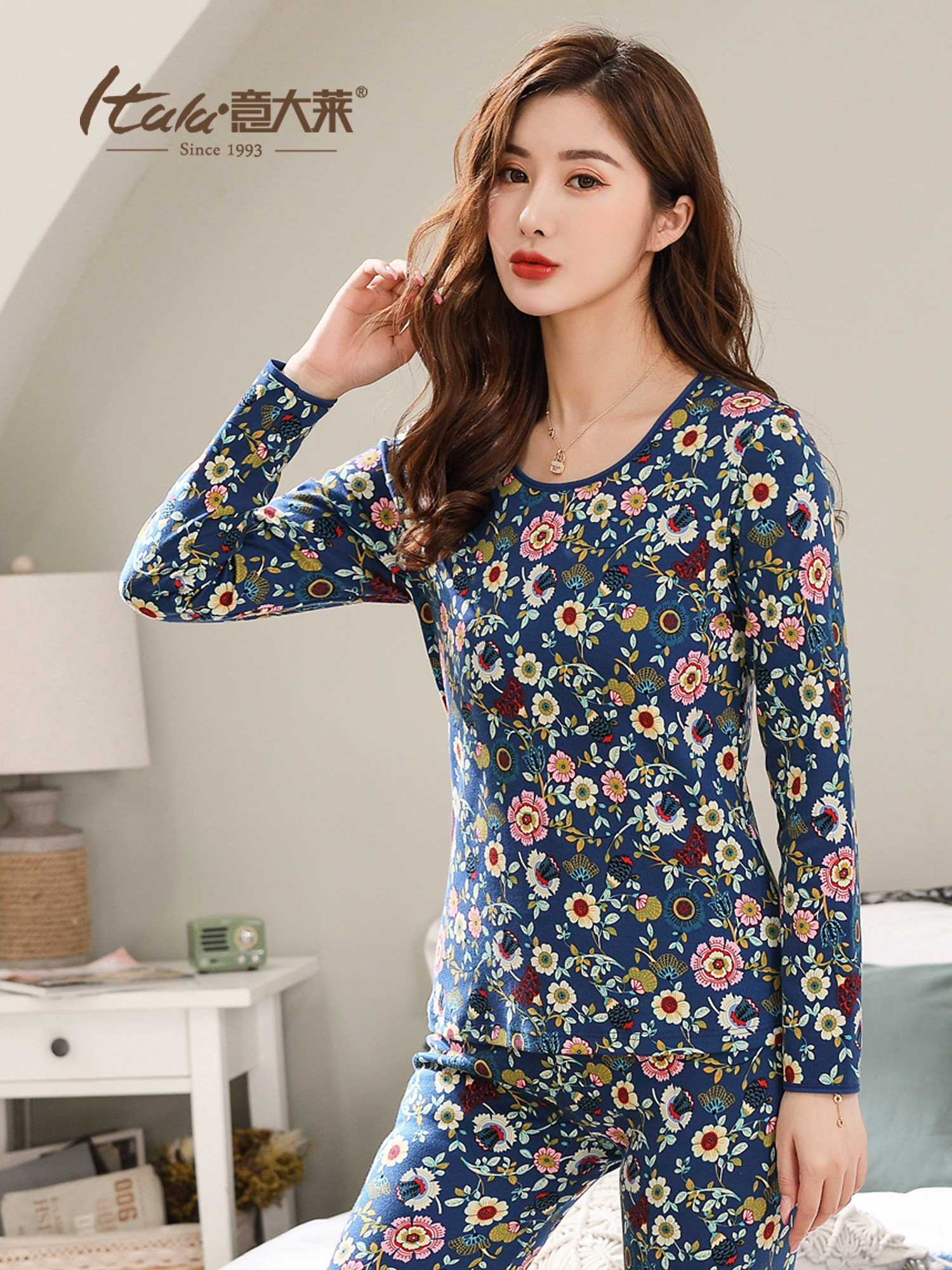 Italian autumn and winter women's pure cotton autumn clothes and long johns suit cotton sweater cotton thin section thermal underwear