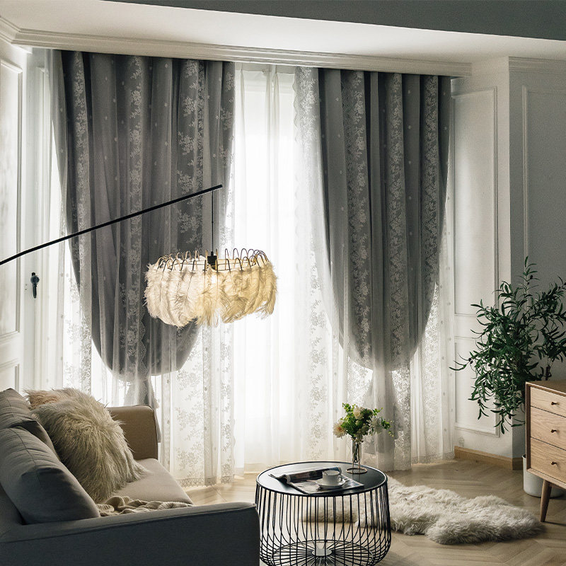 Take part in a cloth-milk tea method lace princess wind curtains double cloth yarn integrated light and luxurious mesh red custom finished product