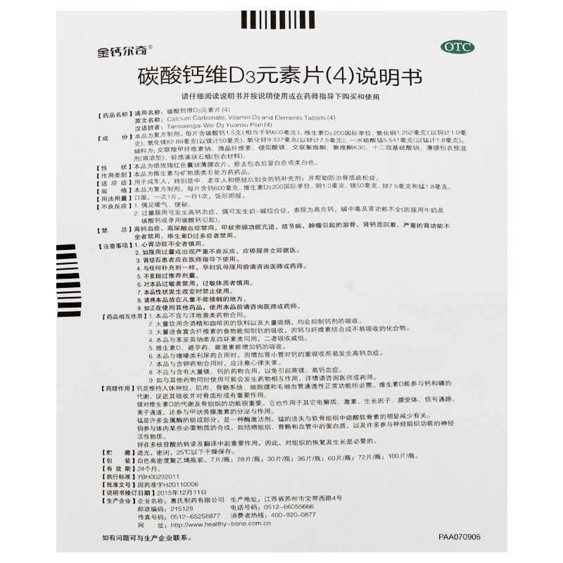 Calcium Carbonate D3 Element Tablets (4) 60 tablets to prevent osteoporosis