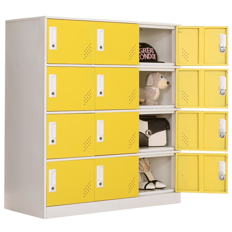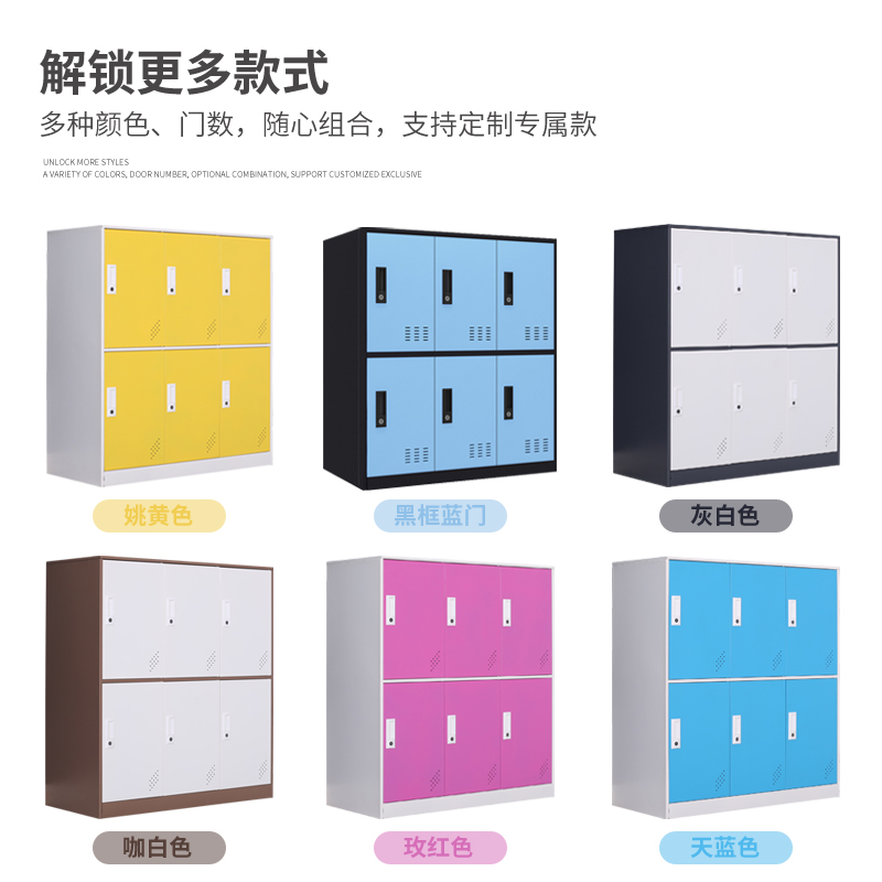 Four-door storage cabinet-white frame blue door Six-door storage cabinet-white frame blue door Nine-door storage cabinet-white frame blue door Twelve-door storage cabinet-white frame blue door Four-door storage cabinet-white frame yellow door
