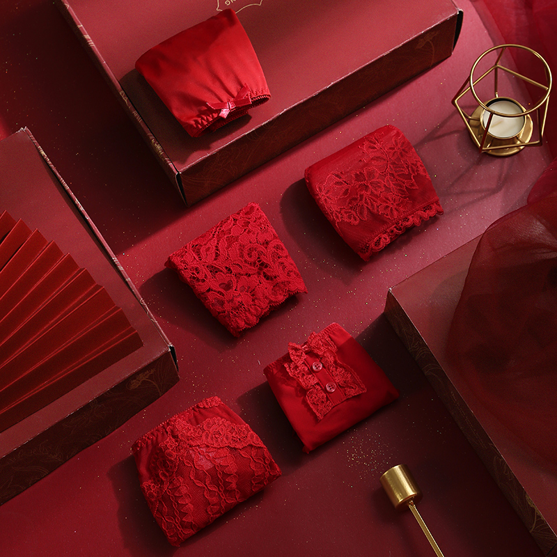 Baoshi Captitian Tiger's Life Year Red Underpants Feminists Lace Free of Breathable Low Waist Lifting Hip Pure Cotton Crotch Safety Pants
