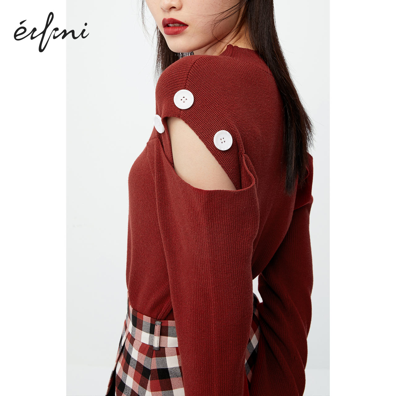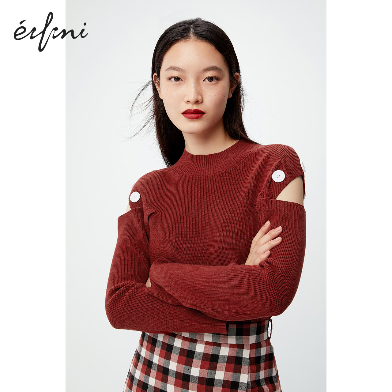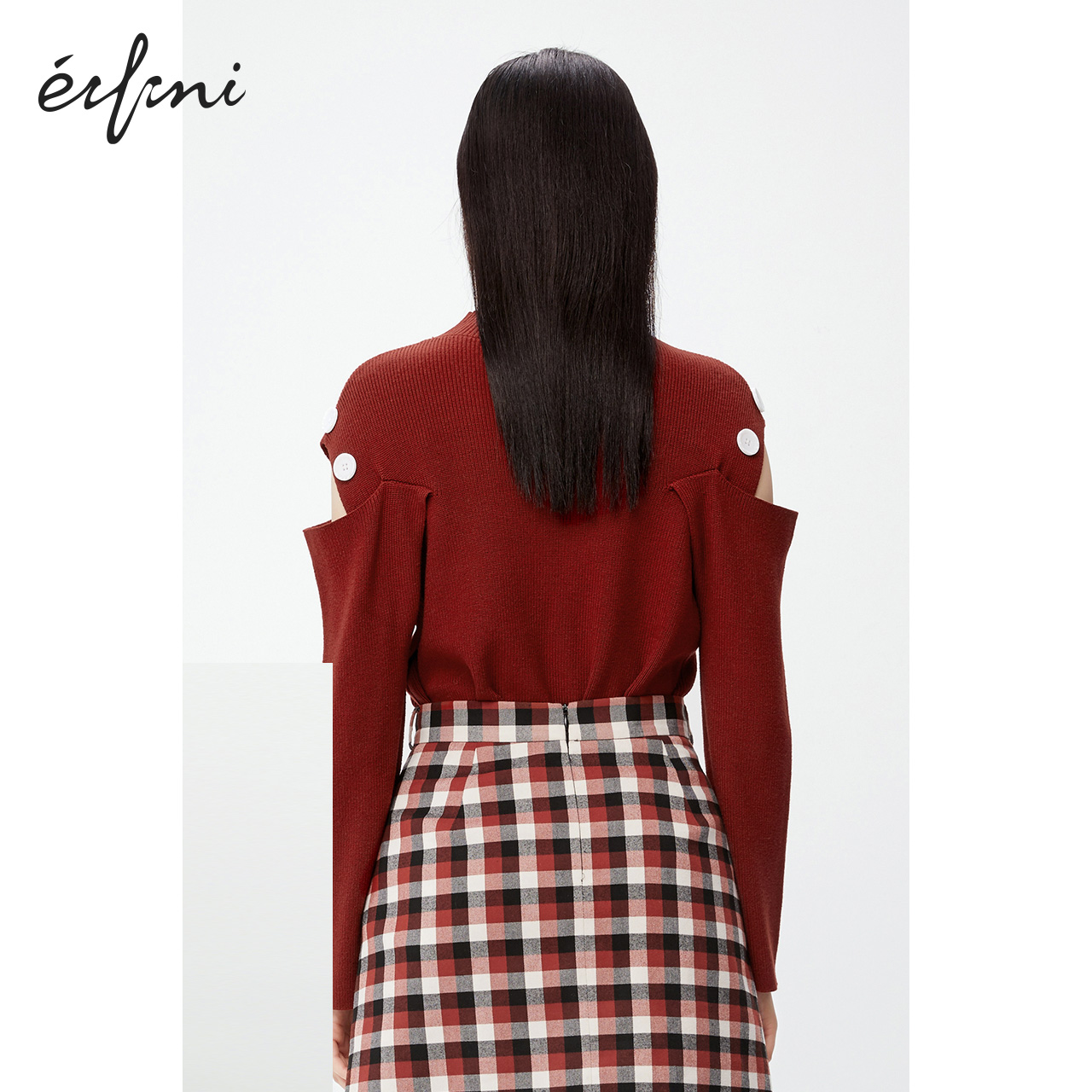 Evelyn knitted top 2022 new autumn Korean version design small off-the-shoulder red loose knitted sweater women