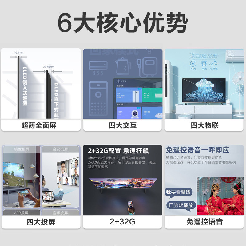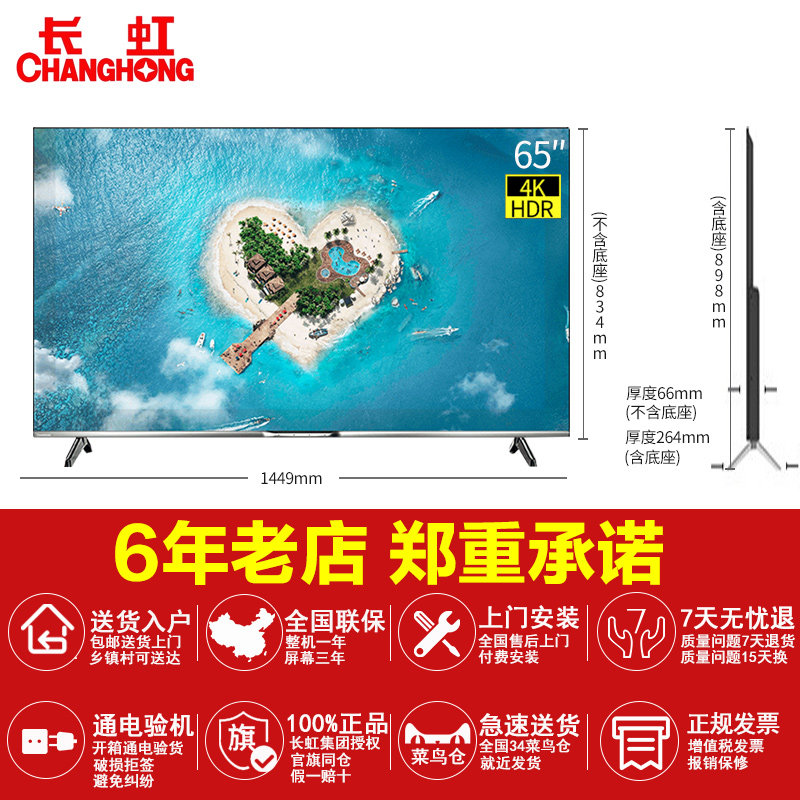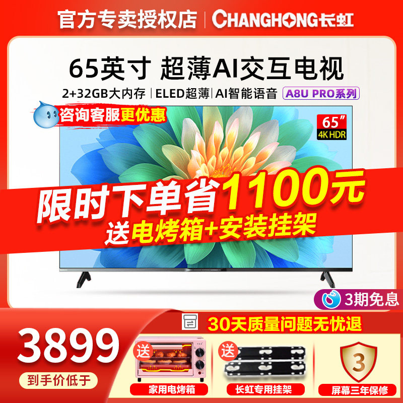 Changhong 65A8U Pro 65-inch 4K ultra-clear intelligent voice smart IoT home flat LCD TV 55