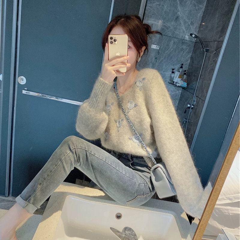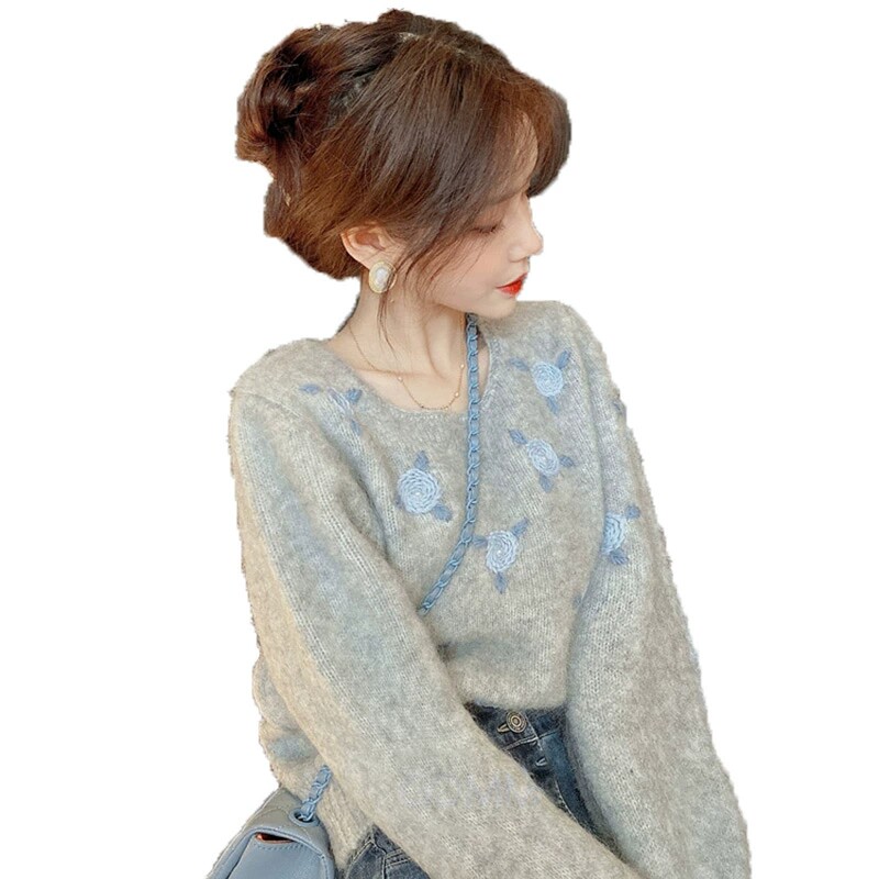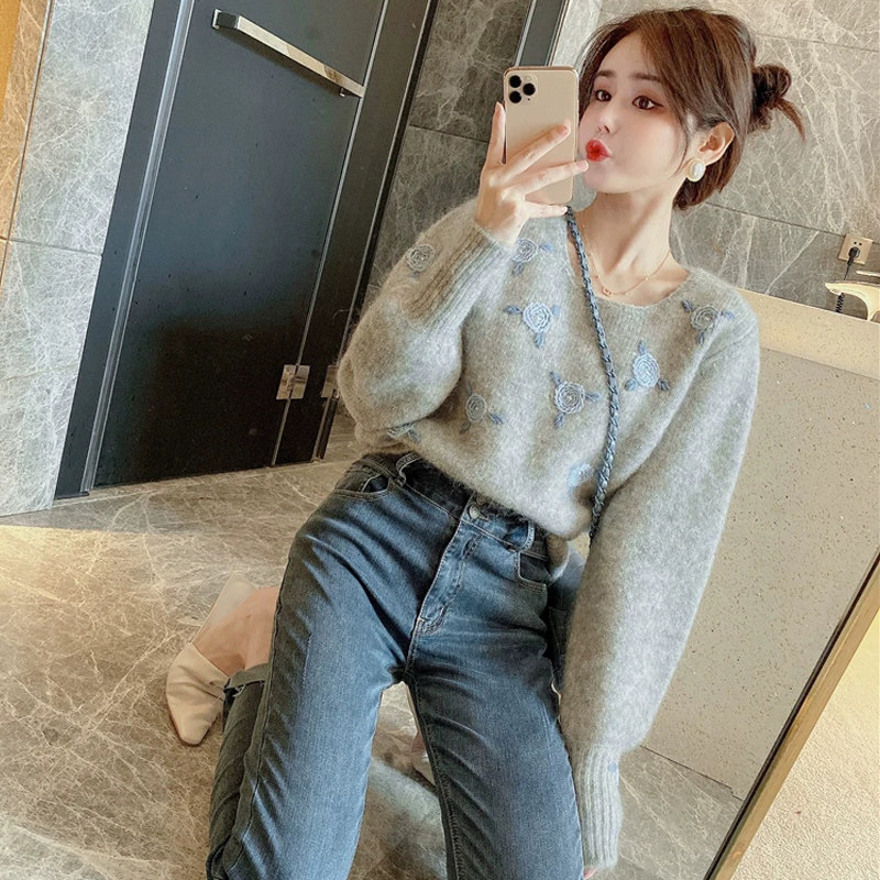 2021 Autumn winter new Lazy Wind Knitted Blouse small Thickening Short sweaters Bottoms Sweater Women Loose outwear
