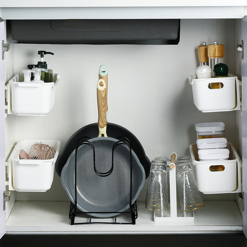 Two pull-out kitchen racks for single pull-out kitchen shelve