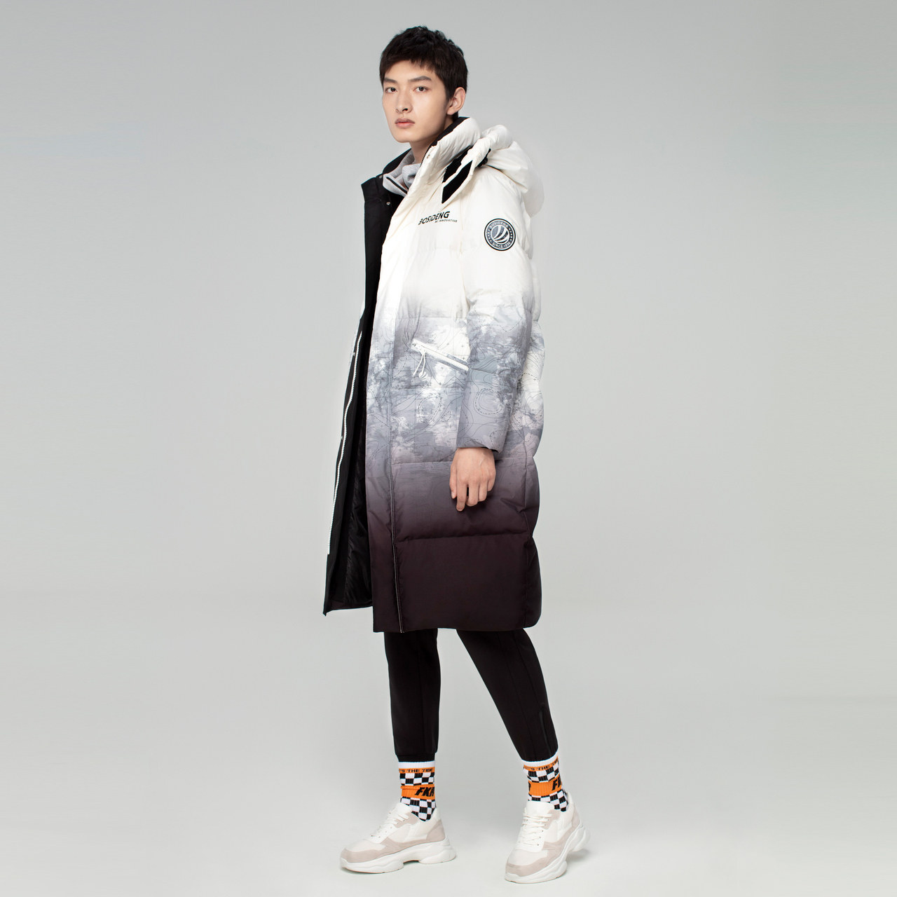 Bourgendon 2020 new asymptotic colour long version over knee down jacket male youth windproof thick jacket B00143083