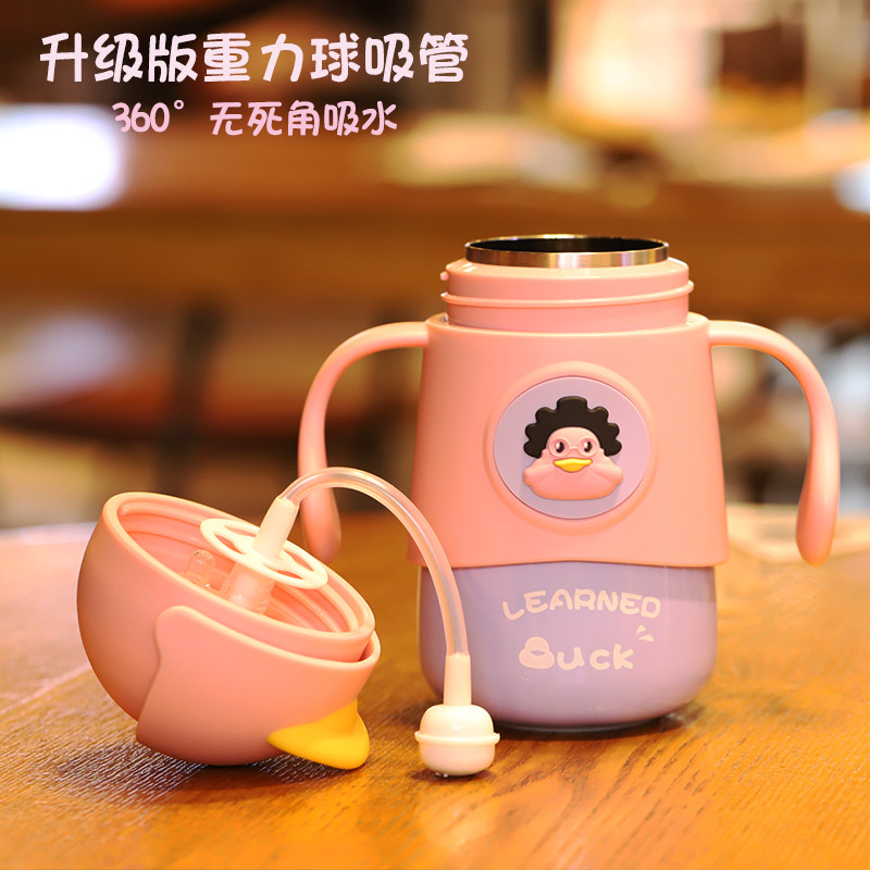 Baby water cup School drinking cup Baby leak-proof choke straw cup Children's thermos cup kettle Cute child girl fell