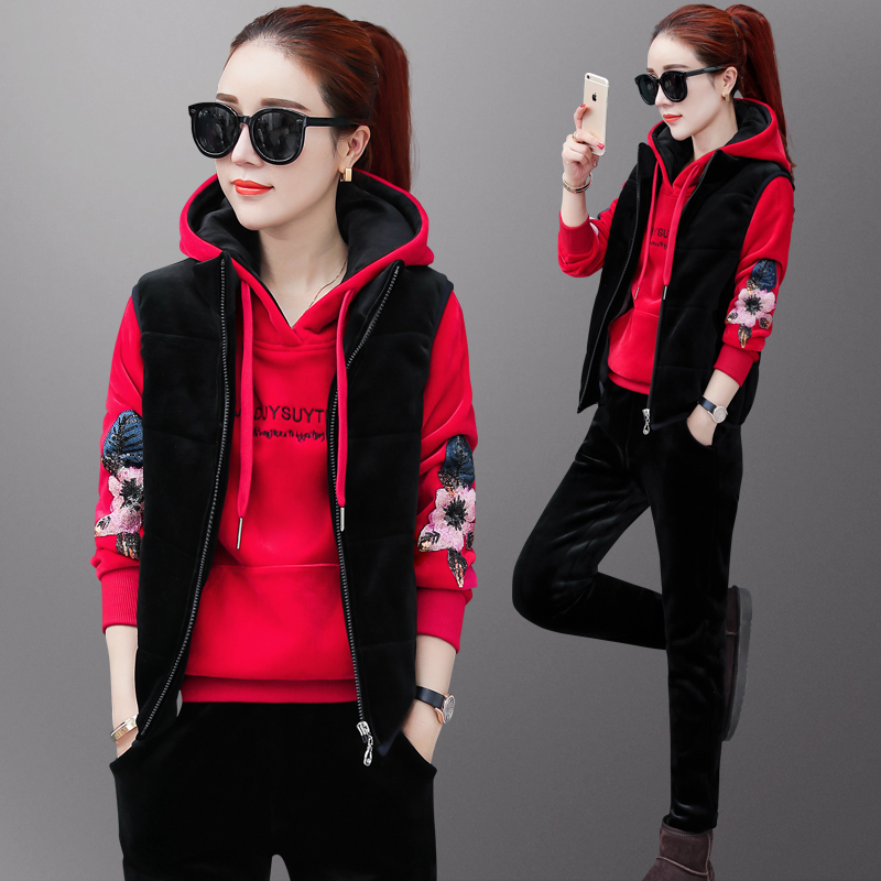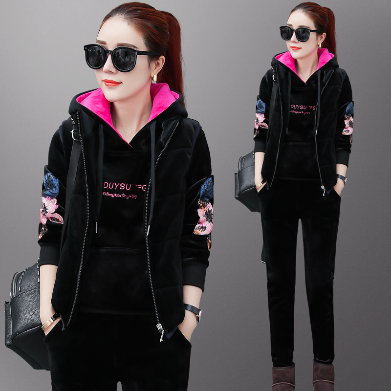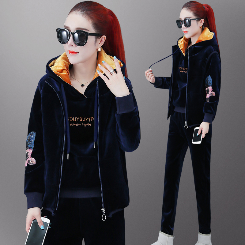 Plus Fleece Thickened Sports Suit Women Autumn Winter 2021 New Fashion Winter Gold Velvet Clothing Casual Three Style Suits