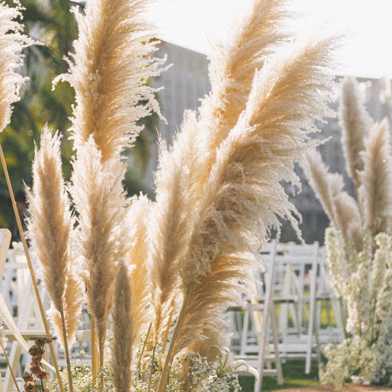 Shop Window Decoration Wedding Celebration White Reed Dried Flower Busfan Wedding Scene Inserts Floral Dry Canemone Leaf Palm Natural