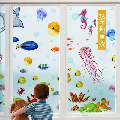 Powder room shower room wall tile glass waterproof decoration Removable stickers Children's room wall stickers Cartoon fish