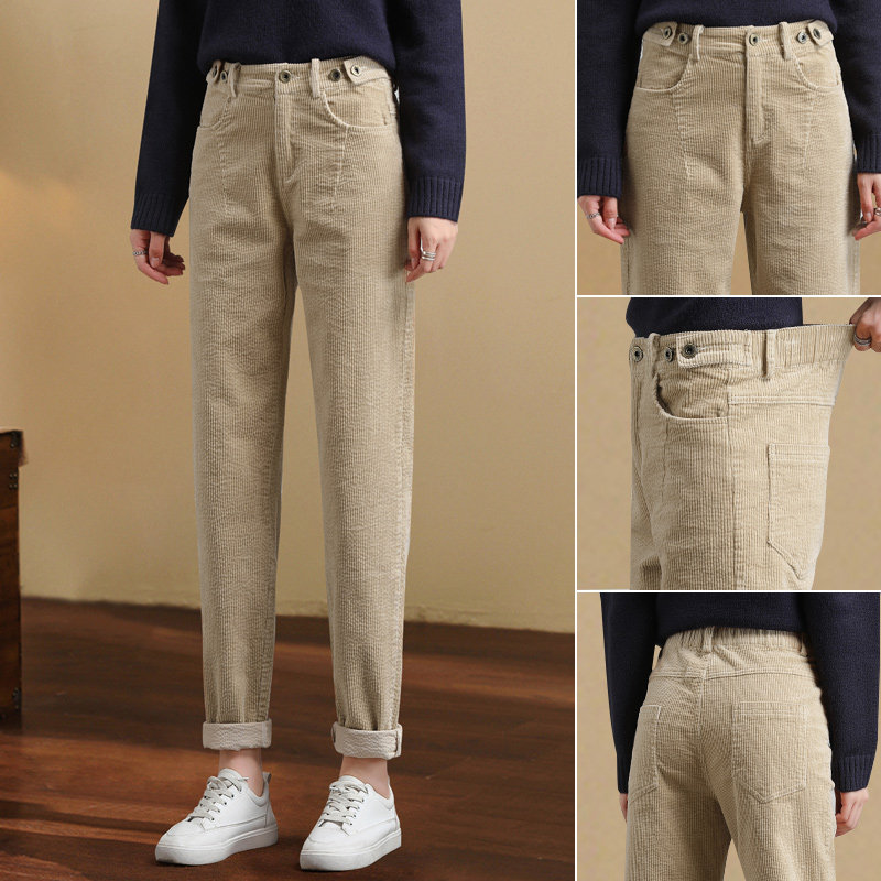 Beige plus suede pants woman card with its light core suede pants 2021 autumn winter grandma roperin little feet tall