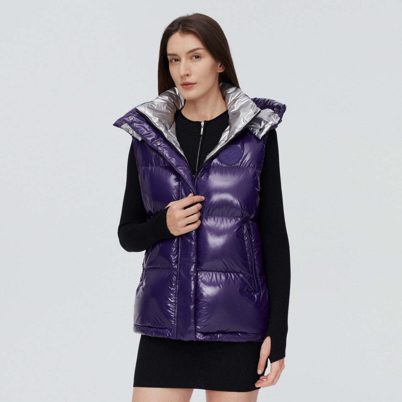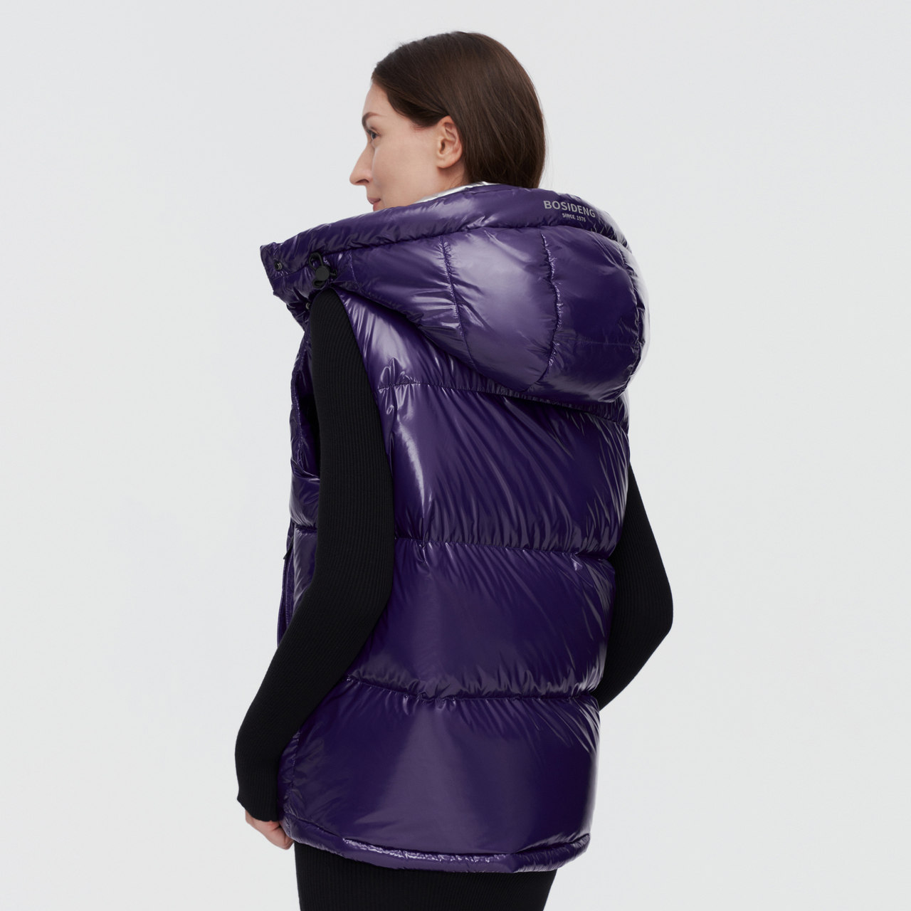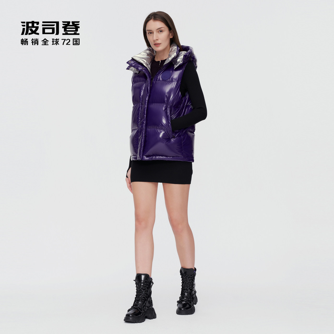 Bosideng's new women's fashion bright surface warm short down vest goose down winter sleeveless outer wear tide