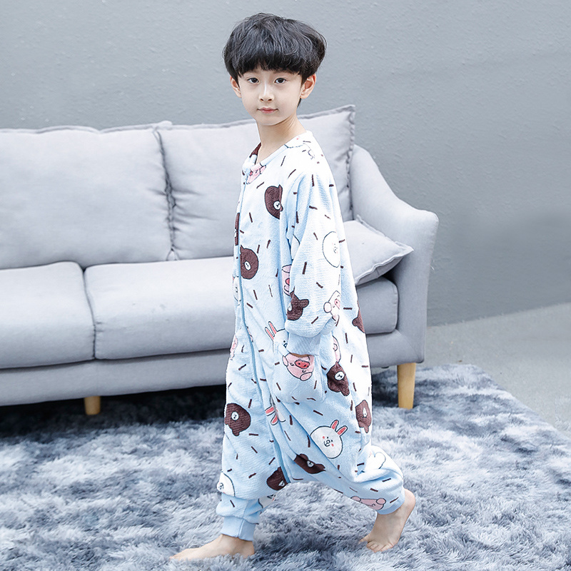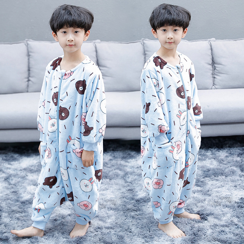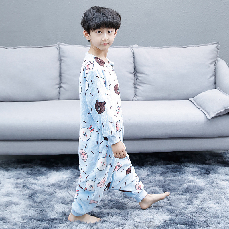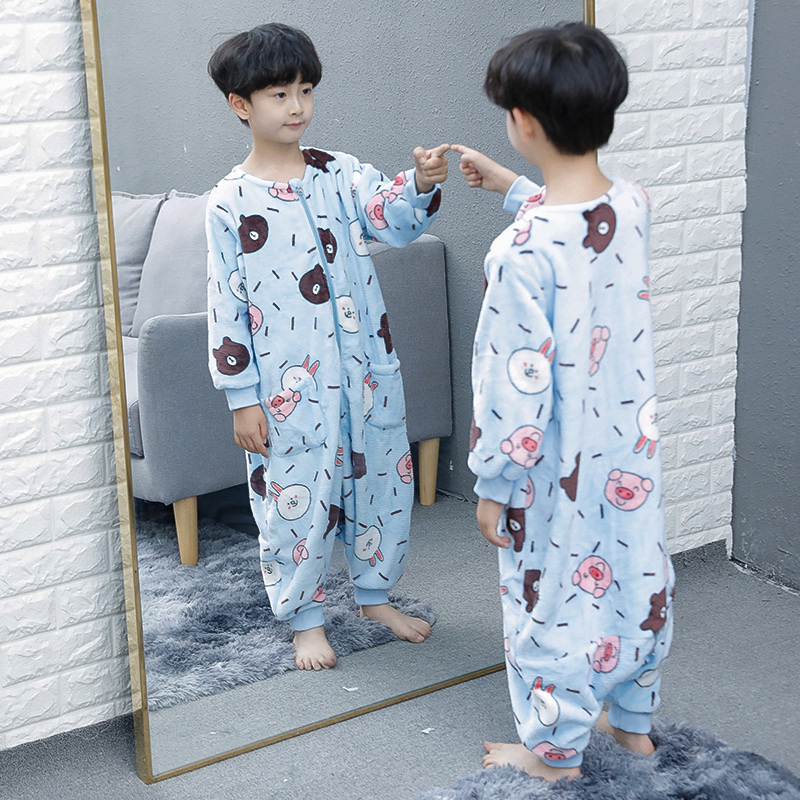 Children's nightgown jumpsuit spring and autumn large children's coral velvet thickened home clothes Autumn and winter boys air conditioning clothes pajamas
