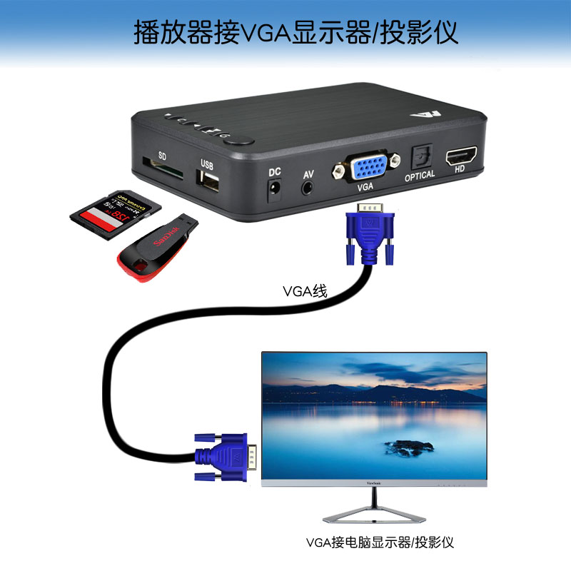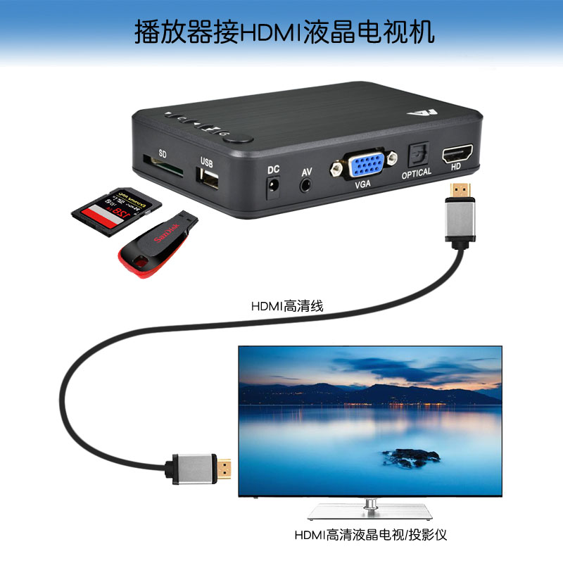 USB multimedia player HD advertising machine car player 1080P support U disk mobile hard disk SD card