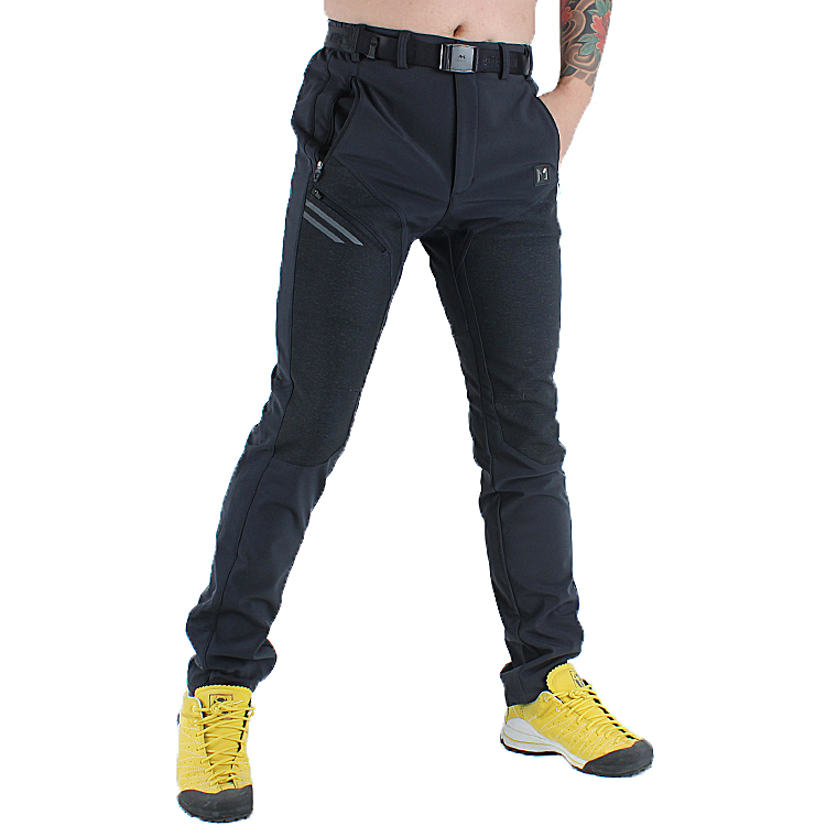 Hiking Mountaineering Pants Male winter waterproof windproof outdoor punching pants warm and breathable elastic soft shell grabbing suede pants splicing