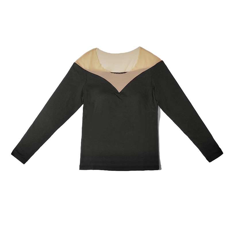 With chest cushion one-piece style of undershirt female autumn and winter mesh yarn splicing blouse temperament 100 lap without marks and round collar heating clothes