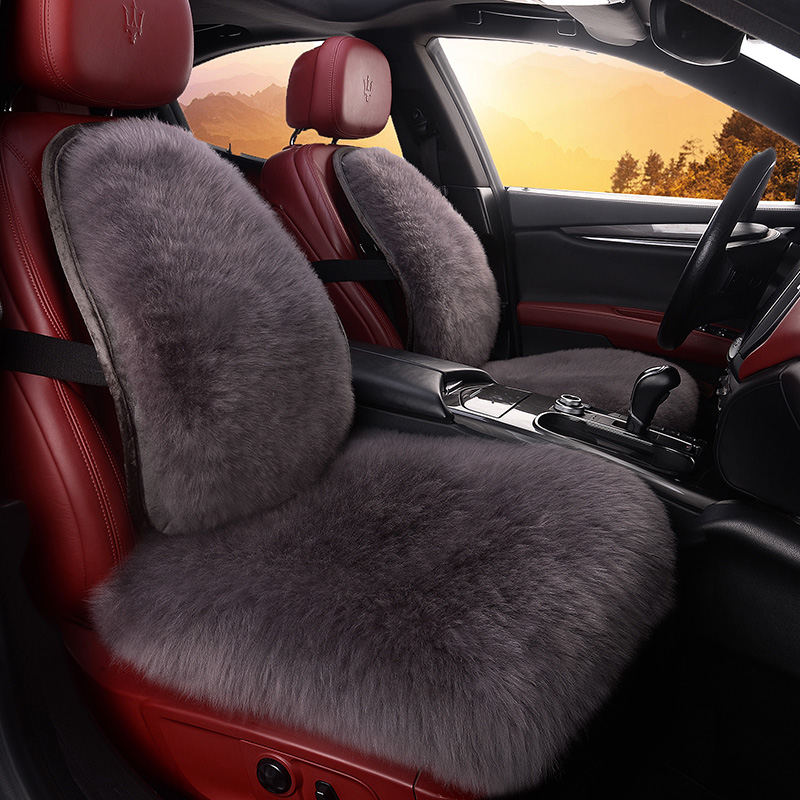 Winter pure wool car cushion fur one long plush three-piece set without back-to-back single piece cashmere car seat cushion