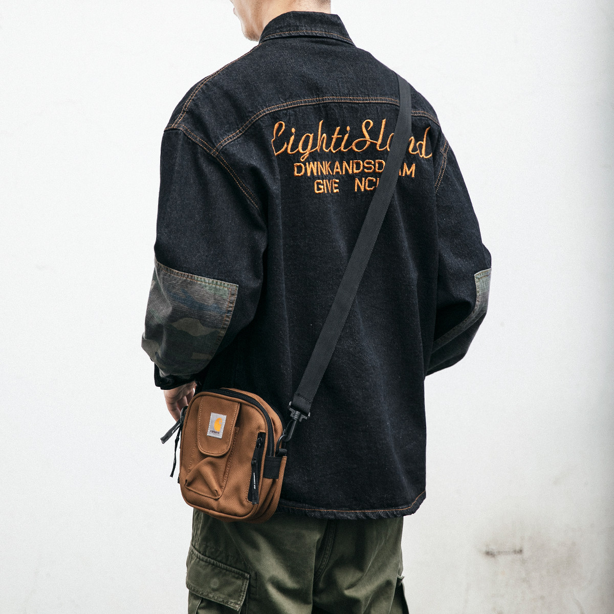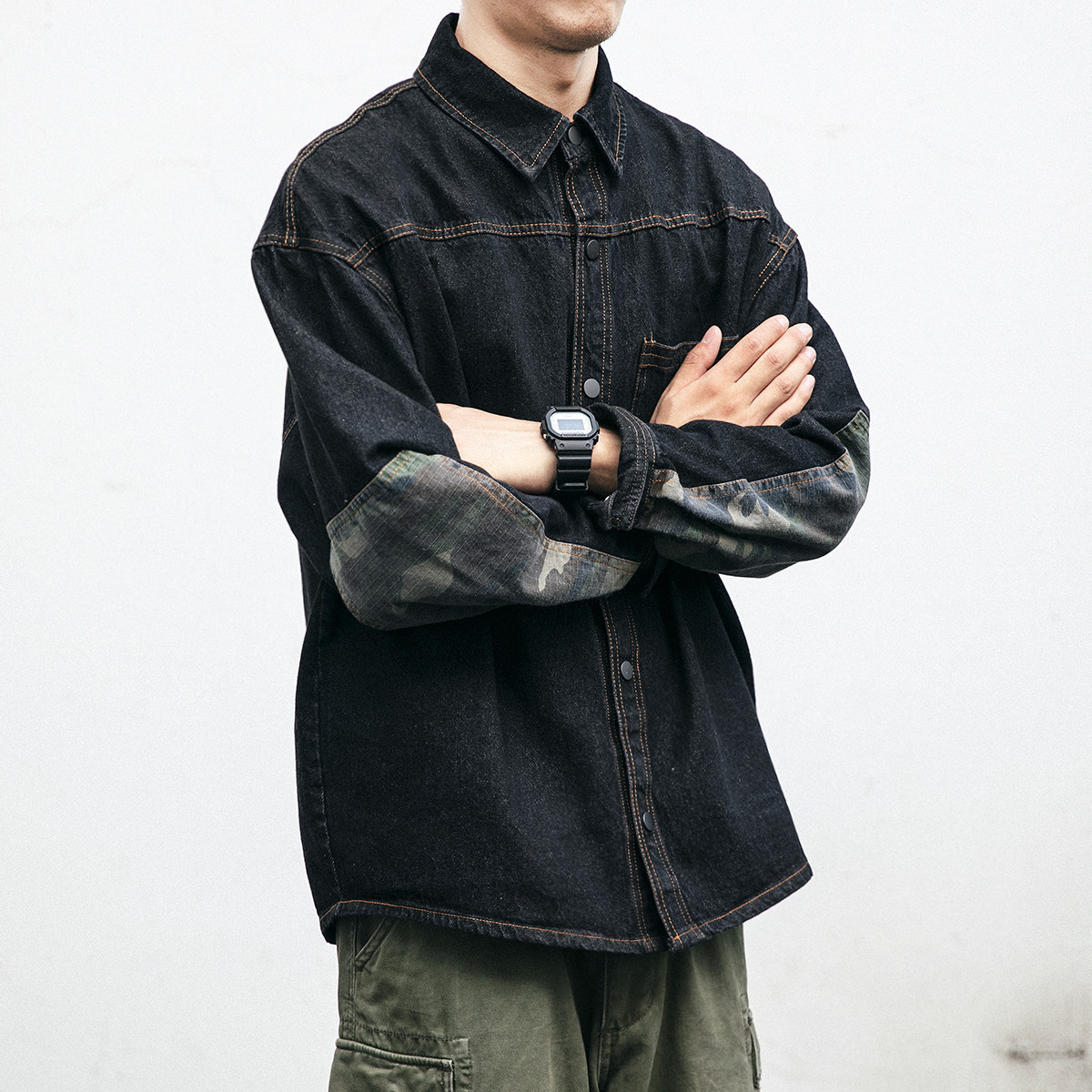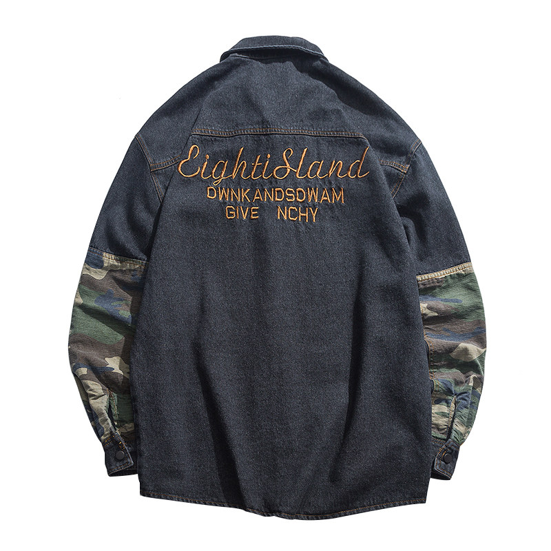 American denim jacket men's letter embroidery lapel tooling loose casual jacket Korean version trend camouflage top trend