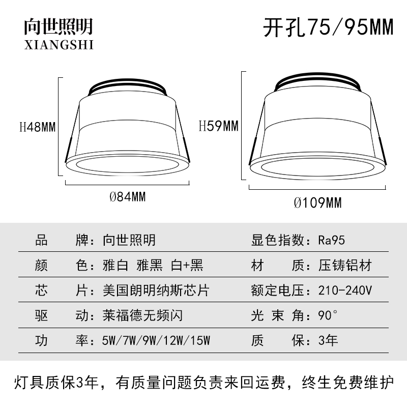 To World Lighting Anti-glare Cylinder Light Recessed LED ceiling lamp Corridor Xuanguan Bucket Lamp Round bore 7 5 9 5CM