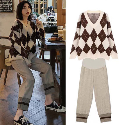 Maternity pants Winter trousers suit fashion net red two-piece set of autumn and winter velvet thick leggings