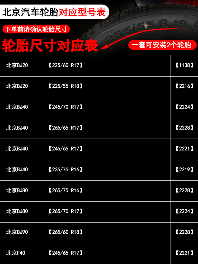 BJ20(225 60 R17)(1138)BJ20(225 55 R18)(2216)BJ40(245 70 R17)